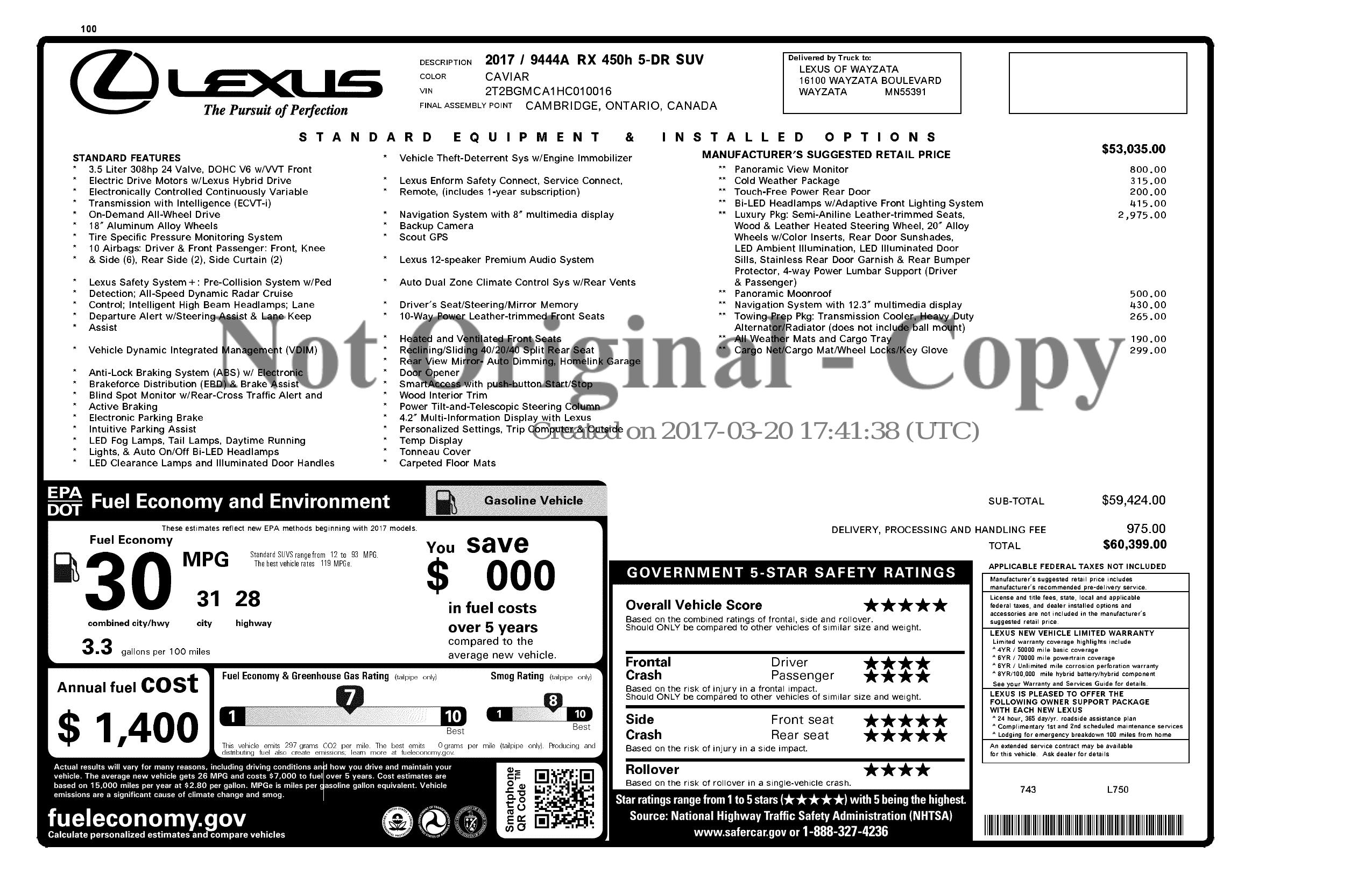 2017 Lexus RX RX 450h AWD